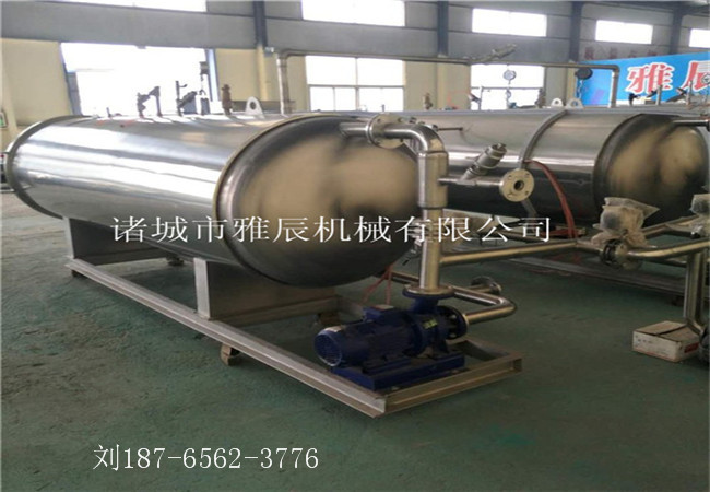 包括鍋身、鍋蓋、彎臂裝置、安全連鎖裝置、軌道、密封圈、蒸汽、噴管、冷卻水管、管道、保壓裝置及閘閥等。氣墊密封式殺菌鍋的密封裝置采用國內技術配置,整機設計合理,運行安全可靠,結構緊湊,具有操作容易,維修方便、安裝簡單等特點。保壓采用自動控制裝置,當壓力超限時可以自動進行調節,以保證容器在允許范圍內正常工作。